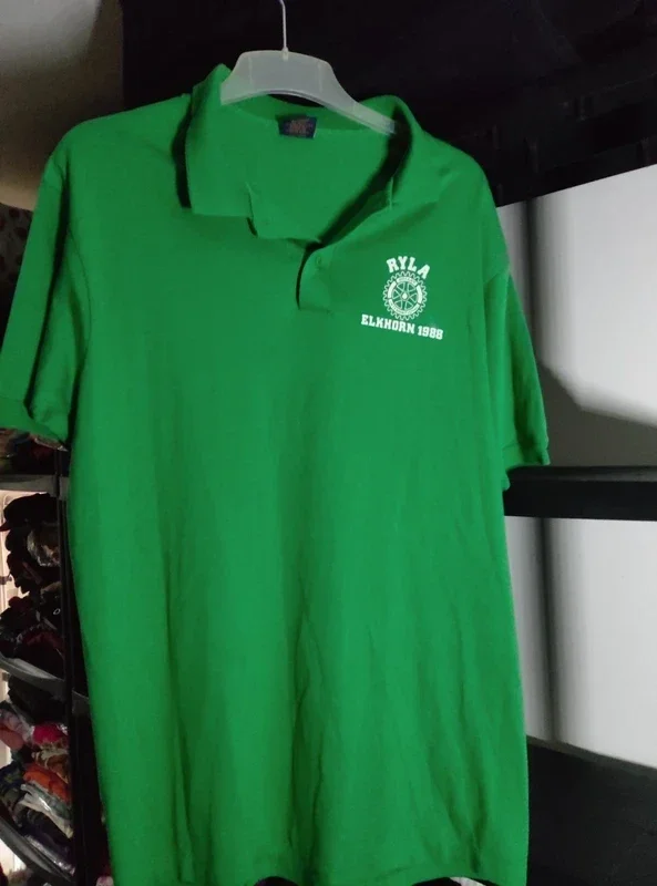 Ce polo, d'un Vert Pin profond, est une véritable capsule de 1988. Il commémore l'événement RYLA (Rotary Youth Leadership Awards) du district ELKHORN (États-Unis). Au-delà d'un simple vêtement, c'est un insigne d'appartenance à un mouvement international de jeunesse des années 80.