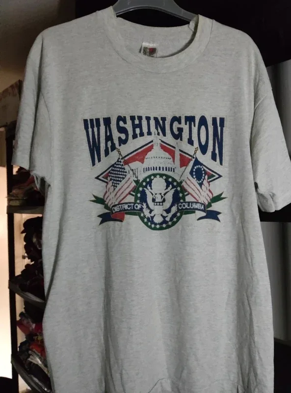 Ce T-shirt commémore la capitale américaine, Washington D.C. ! Il est représentatif des T-shirts souvenirs emblématiques de la fin des années 80 et du début des années 90, avec un design classique de monuments ou de logos locaux. Une pièce Americana facile à porter.