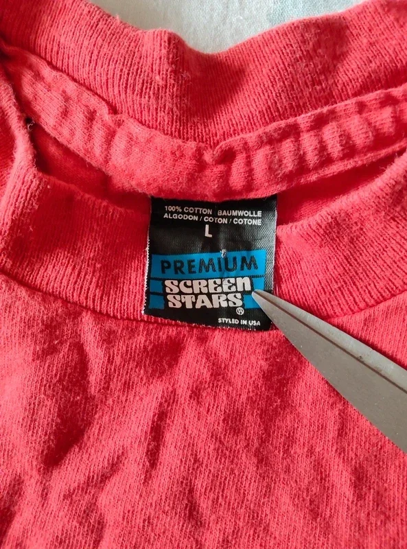 Détails Uniques : Il est fabriqué en Single Stitch (couture simple) et arbore le tag Screen Stars, deux marqueurs d'authenticité essentiels pour les collectionneurs de T-shirts des années 90. C'est un vêtement chargé d'histoire, ayant probablement été porté par un participant !